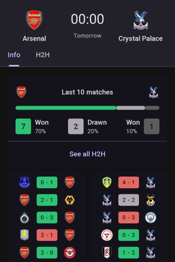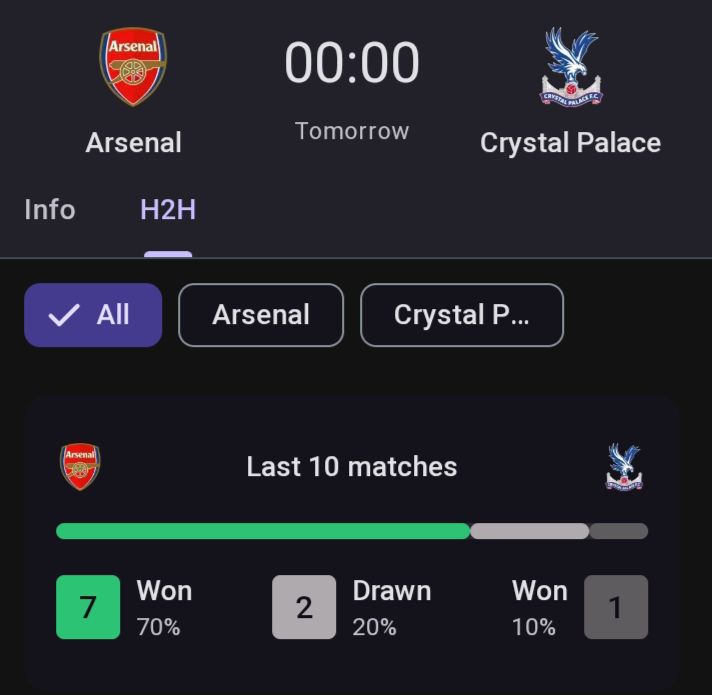 Tactics: Palace is known for being the fastest counter-attacking side in the league this season. Arsenal will likely dominate possession, but they must be wary of Palace’s direct speed and set-piece prowess.