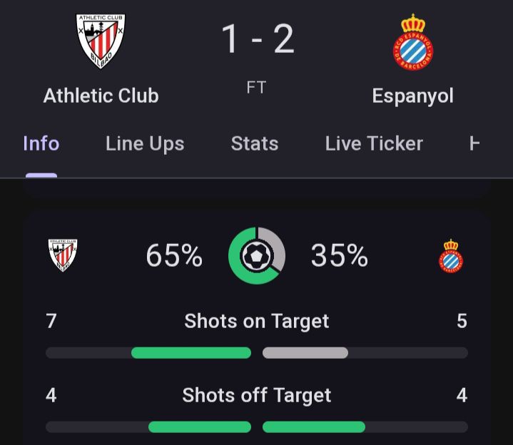 Shots on Target: Athletic Club 7 | Espanyol 5