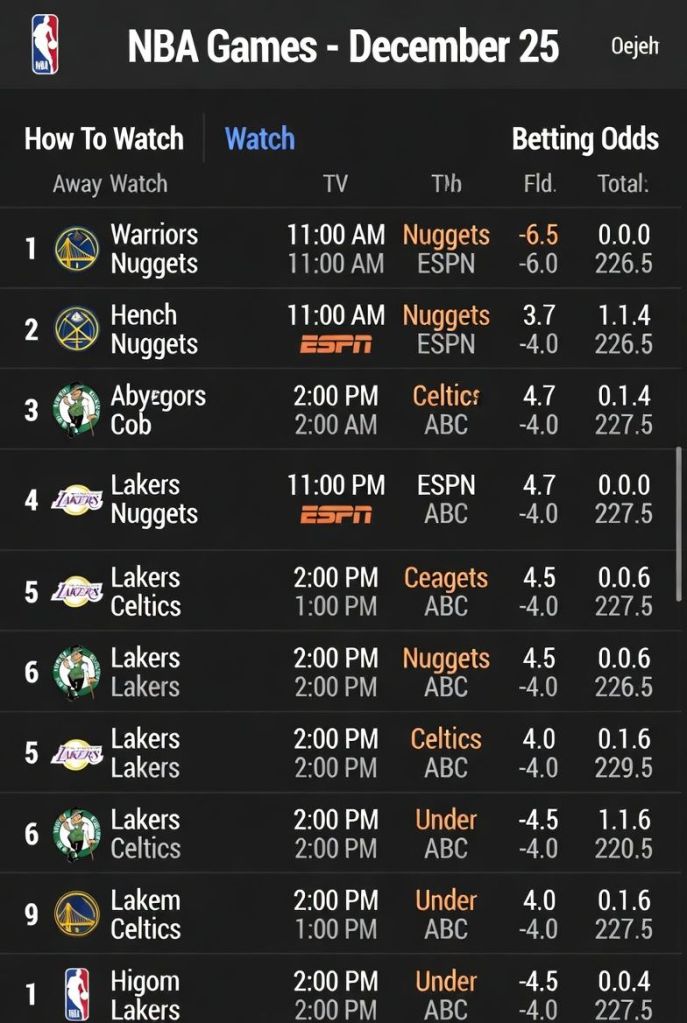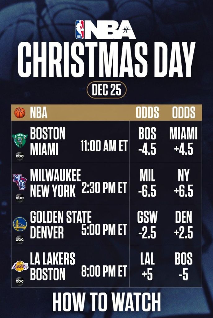 The NBA’s annual Christmas Day slate features five marquee games spanning over 13 hours, showcasing top stars, rivalries, and emerging talents. All games are nationally televised and simulcast on ABC and ESPN, with streaming available on the ESPN app or services like YouTube TV, Hulu + Live TV, and Fubo.