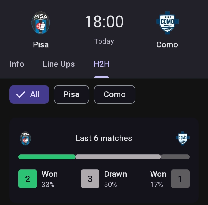 Head-to-head: Recent meetings (mostly in lower divisions) were tight, with Como winning the last one 3-1 in Serie B (March 2024). Pisa hadn’t beaten Como in the last five encounters.