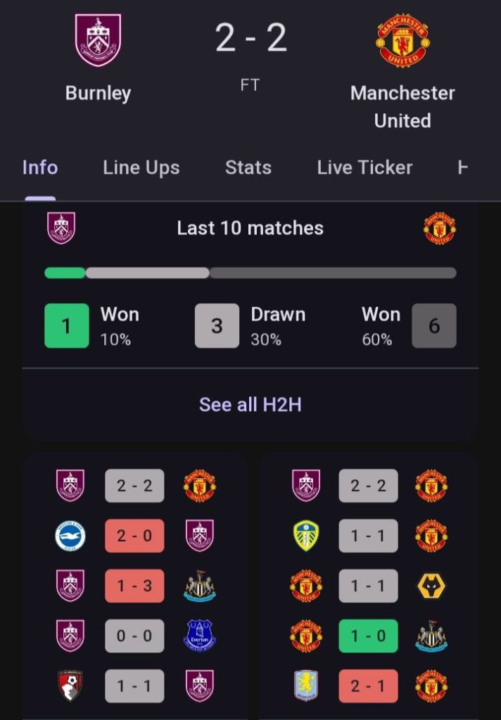 Head-to-head: Manchester United historically dominate, but this draw reflected Burnley’s fighting spirit at home